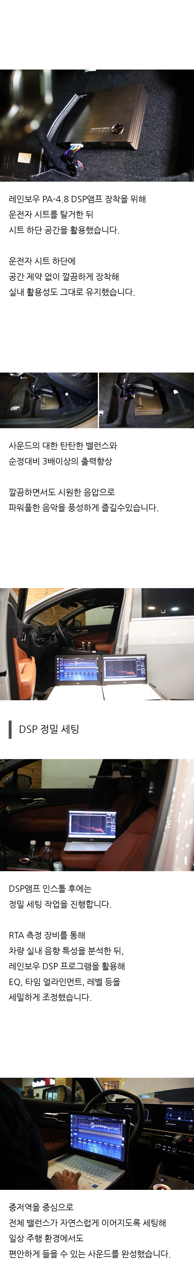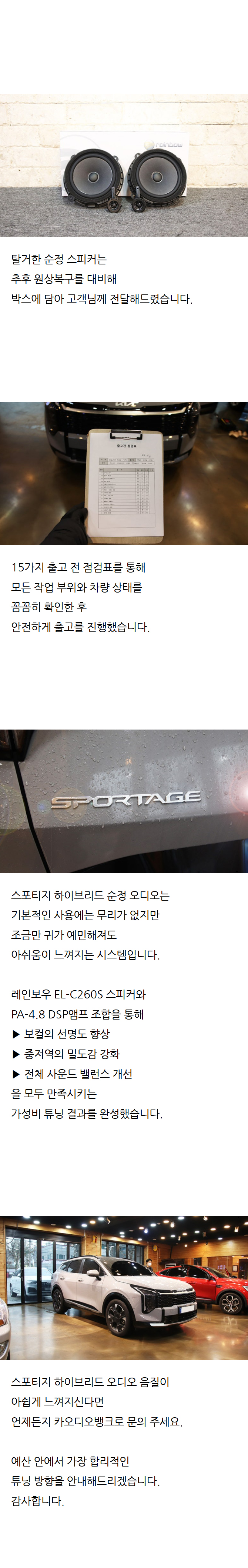 À̹ø¿¡ Á¦ Â÷·® ½ºÆ÷ƼÁö ¿Àµð¿À Æ©´×À» À§ÇØ ¿©·¯ °÷À» ¾Ë¾Æº¸´Ù°¡ ÃÖÁ¾ÀûÀ¸·Î Ä«¿Àµð¿À¹ðÅ© ±¤Áø±¸ ¸ÅÀå¿¡¼­ ÀÛ¾÷À» ÁøÇàÇÏ°Ô µÇ¾ú½À´Ï´Ù. Æò¼Ò À½¾Ç µè´Â °É ÁÁ¾ÆÇÏ´Ù º¸´Ï ¼øÁ¤ ¿Àµð¿À¿¡ ´ëÇÑ ¾Æ½¬¿òÀÌ Ç×»ó ÀÖ¾ú´Âµ¥, À̹ø ±âȸ¿¡ Á¦´ë·Î ¾÷±×·¹À̵带 ÇØº¸°í ½Í¾î¼­ »ó´ãÀ» ¹Þ¾Æº¸°Ô µÇ¾ú¾î¿ä. »ç½Ç Ä«¿Àµð¿À Æ©´×À̶ó´Â °Ô óÀ½ÀÌ¶ó¼­ ¾î¶² Á¦Ç°ÀÌ ÁÁ°í ¾î¶² Á¶ÇÕÀÌ ¸Â´ÂÁö ÀüÇô ¸ô¶ú´Âµ¥, ¸ÅÀå¿¡ ¹æ¹®ÇßÀ» ¶§ Á÷¿øºÐµéÀÌ Á¤¸» Ä£ÀýÇÏ°Ô »ó´ãÀ» ÇØÁּż­ ±²ÀåÈ÷ ÀλóÀûÀ̾ú½À´Ï´Ù. ´Ü¼øÈ÷ ºñ½Ñ Á¦Ç°À» ±ÇÇÏ´Â °ÍÀÌ ¾Æ´Ï¶ó, Á¦°¡ Æò¼Ò ¾î¶² À½¾ÇÀ» µè´ÂÁö, ¾î¶² À½»öÀ» ÁÁ¾ÆÇÏ´ÂÁö, ±×¸®°í Â÷·® ȯ°æ±îÁö °í·ÁÇØ¼­ °¡¼ººñ¿Í ¹ë·±½º¸¦ ¸ÂÃá ½Ã½ºÅÛÀ» ÃßÃµÇØ ¹«¾ùº¸´Ù ÁÁ¾Ò´ø Á¡Àº ¼³¸íÀ» Á¤¸» ÀÌÇØÇϱ⠽±°Ô ÇØÁ̴ּٴ °ÍÀÔ´Ï´Ù. ¿Àµð¿À Æ©´×À» Àß ¸ð¸£´Â »ç¶÷µµ ÀÌÇØÇÒ ¼ö ÀÖ°Ô ½ÇÁ¦ À½¾ÇÀ» µé·ÁÁָ鼭 Â÷À̸¦ ¼³¸íÇØ Áּż­ ½Å·Ú°¡ ¸¹ÀÌ °¬½À´Ï´Ù. ÀÛ¾÷ °úÁ¤µµ ±²ÀåÈ÷ ²Ä²ÄÇß½À´Ï´Ù. Â÷·® ³»ÀåÀ縦 Å»°ÅÇÏ´Â °úÁ¤¿¡¼­µµ ½ºÅ©·¡Ä¡³ª ¼Õ»óÀÌ »ý±âÁö ¾Êµµ·Ï ¸Å¿ì ½Å°æ ¾²½Ã´Â ¸ð½ÀÀÌ º¸¿´°í, ¹è¼± Á¤¸®³ª ÀåÂø ¸¶°¨µµ »ó´çÈ÷ ±ò²ûÇÏ°Ô ÁøÇàÇØ Áּ̽À´Ï´Ù. ÀÌ·± ºÎºÐ¿¡¼­ È®½ÇÈ÷ Àü¹® ¸ÅÀåÀ̶ó´Â ´À³¦À» ¹Þ¾Ò½À´Ï´Ù. Æ©´×ÀÌ ³¡³­ ÈÄ¿¡ óÀ½ À½¾ÇÀ» Ʋ¾îºÃÀ» ¶§ ¼ÖÁ÷È÷ ¸»Çؼ­ Á¤¸» ³î¶ú½À´Ï´Ù. ¼øÁ¤ ¿Àµð¿À¿Í´Â ¿ÏÀüÈ÷ ´Ù¸¥ Â÷¿øÀÇ »ç¿îµå¿´½À´Ï´Ù. °¡Àå ¸ÕÀú ´À²¸Áø °Ç º¸ÄÃÀÌ ÈξÀ ¶Ç·ÇÇÏ°Ô µé¸°´Ù´Â °ÍÀ̾ú°í, ¾Ç±â ¼Ò¸® ÇϳªÇϳª°¡ ºÐ¸®µÇ¾î µé¸®´Â ´À³¦À̾ú½À´Ï´Ù. ÀÌÀü¿¡´Â ÀüüÀûÀ¸·Î ¹¶°³Á®¼­ µé¸®´ø À½¾ÇÀÌ ÀÌÁ¦´Â °ø°£°¨ ÀÖ°Ô ÆîÃÄÁö´Â ´À³¦À̾ú¾î¿ä. ±×¸®°í ¼­ºê¿ìÆÛ ´öºÐ¿¡ ÀúÀ½ÀÌ Á¤¸» ´Ü´ÜÇÏ°Ô ¹ÞÃÄÁÝ´Ï´Ù. ´Ü¼øÈ÷ ÄôÄô ¿ï¸®´Â ÀúÀ½ÀÌ ¾Æ´Ï¶ó ±íÀÌ ÀÖ°í źźÇÑ ÀúÀ½À̶ó À½¾Ç µè´Â Àç¹Ì°¡ È®½ÇÈ÷ ´Þ¶óÁ³½À´Ï´Ù. ƯÈ÷ ÈüÇÕÀ̳ª EDM °°Àº À帣¿¡¼­´Â ü°¨ÀÌ ÈξÀ Å©°Ô ´À²¸Á³½À´Ï´Ù. ¶Ç Çϳª ÁÁ¾Ò´ø Á¡Àº ÀÛ¾÷ÀÌ ³¡³­ ÈÄ¿¡µµ ¼¼ÆÃÀ» ²Ä²ÄÇÏ°Ô Àâ¾ÆÁ̴ּٴ °ÍÀÔ´Ï´Ù. ´Ü¼øÈ÷ ÀåÂø¸¸ ÇÏ´Â °ÍÀÌ ¾Æ´Ï¶ó Â÷·® ³»ºÎ ȯ°æ°ú ûÃë À§Ä¡¸¦ °í·ÁÇØ¼­ À½Ç⠹뷱½º¸¦ ¼¼¹ÐÇÏ°Ô Á¶Á¤ÇØ Áּż­ ¿Ï¼ºµµ°¡ »ó´çÈ÷ ³ô´Ù´Â ´À³¦À» ¹Þ¾Ò½À´Ï´Ù. Æ©´×À» ÇÏ°í ³ª´Ï ÀÌÁ¦ Â÷¿¡¼­ À½¾Ç µè´Â ½Ã°£ÀÌ Á¤¸» Áñ°Å¿öÁ³½À´Ï´Ù. ÃâÅð±Ù ±æÀ̳ª µå¶óÀ̺êÇÒ ¶§¸¶´Ù À½¾ÇÀ» °è¼Ó Ʋ°Ô µÇ³×¿ä. ¿¹Àü¿¡´Â ±×³É ¹è°æÀ½Ã³·³ µè´ø À½¾ÇÀÌ ÀÌÁ¦´Â ÀÛÀº Äܼ­Æ®Àå¿¡ ÀÖ´Â °Í °°Àº ´À³¦À¸·Î µé¸³´Ï´Ù. ÀüüÀûÀ¸·Î ´À³¤ Á¡Àº Ä«¿Àµð¿À¹ðÅ©´Â ´Ü¼øÇÑ ÀåÂø ¸ÅÀåÀÌ ¾Æ´Ï¶ó Á¤¸» ¿Àµð¿À¸¦ Á¦´ë·Î ÀÌÇØÇϰí ÀÛ¾÷ÇÏ´Â Àü¹® ¸ÅÀåÀ̶ó´Â °ÍÀÔ´Ï´Ù. »ó´ãºÎÅÍ ÀÛ¾÷, ¼¼ÆÃ±îÁö ¸ðµç °úÁ¤ÀÌ ¸¸Á·½º·¯¿ü½À´Ï´Ù. Ȥ½Ã Â÷·® ¿Àµð¿À Æ©´×À» °í¹ÎÇÏ°í °è½Å ºÐµéÀÌ ÀÖ´Ù¸é Ä«¿Àµð¿À¹ðÅ© Çѹø ¹æ¹®Çؼ­ »ó´ã ¹Þ¾Æº¸½Ã´Â °É Ãßõµå¸³´Ï´Ù. Ä£ÀýÇÑ »ó´ã°ú Àü¹®ÀûÀÎ ÀÛ¾÷ ´öºÐ¿¡ Á¤¸» ¸¸Á·½º·¯¿î ¾÷±×·¹À̵带 ÇÒ ¼ö ÀÖ¾ú½À´Ï´Ù. Àúó·³ ¼øÁ¤ ¿Àµð¿À¿¡ ¾Æ½¬¿òÀÌ ÀÖ¾ú´ø ºÐµéÀ̶ó¸é È®½ÇÈ÷ ü°¨ÇÒ ¼ö ÀÖ´Â º¯È­¸¦ ´À³¢½Ç °Å¶ó°í »ý°¢ÇÕ´Ï´Ù. ÁÁÀº ÀÛ¾÷ ÇØÁֽŠī¿Àµð¿À¹ðÅ© Á÷¿øºÐµé²² °¨»çµå¸³´Ï´Ù! 🙏