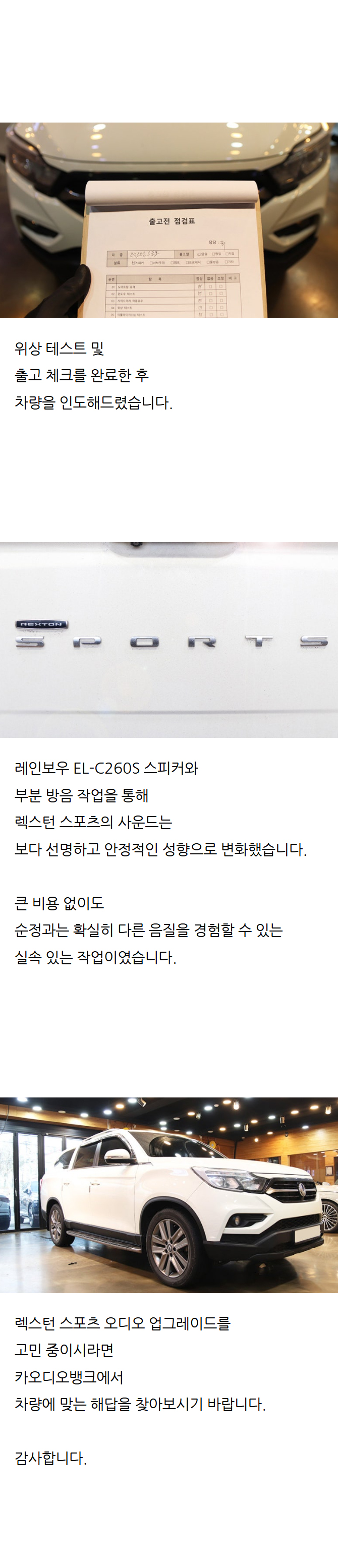 ¾îÁ¦ Â÷¸¦ ¹Þ°í ¿Àµð¿À Àü¿øÀ» ÄÑ´Â ¼ø°£...... ÇÑÃþ ´õ ¾÷±×·¹ÀÌµå µÈ À½Áú¿¡ ³ªµµ ¸ð¸£°Ô ¿ôÀ½ÀÌ~~ ¤¾¤¾ µÎ¹øÂ° ÀÛ¾÷À» ÇÏ°Ô µÈ Ä«¹ð! ¹°·Ð Àú °°Àº ºÐµéÀÌ ¾öû!!! ¸¹ÀÌ °è½Ã´Â°Å ¾Ë°í ÀÖÁö¸¸, Àúµµ ±×ºÐµé ó·³ °¨»çÀÇ ¸¶À½À» ÀüÇϰíÀÚ ÀÌ·¸°Ô ±ÛÀ» ¿Ã¸³´Ï´Ù¤¾¤¾~~ ÀÌÀü¿¡ °è¾à Çß´ø Â÷·®ÀÌ Ãâ°í µô·¹ÀÌ ¶§¹®¿¡ µô·¯¿Í ÇѹÙÅÁ ÇÏ°í °É¾î µÎ¾ú´ø ¿Àµð¿À °è¾à±Ý ±îÁö ȯºÒ ¹Þ´Â »çűîÁö ¹ú¾î Á³Áö¸¸ À¯½ÇÀå´ÔÀº ½ÈÀº ³»»ö ÀüÇô ¾øÀÌ ÈçÄèÈ÷, ½Å¼ÓÇÏ°Ô ÁøÇà ÇØ Áּż­ Á¤¸» Á˼ÛÇÏ°í °¨»ç Çß½À´Ï´Ù ^^. ÇÑ´Þ Àü Â÷·® ±âº¯À» ÇÏ°í ´Ù½Ã À¯½ÇÀå´Ô²² ¹®ÀǸ¦ µå¸®°í À̹øÁÖ Åä¿äÀÏ ÀÛ¾÷À» ÇÏ·Á ÇßÀ¸³ª ±× ³¯Àº °øÈÞÀÏÀ̶ó ÀÛ¾÷ÀÌ ¾ÈµÇ´Â ¾ÈŸ±î¿î »óȲ ¤Ì.¤Ì... ±×·¯³ª ½ÇÀå´ÔÀº ÃÖ¼±À» ´ÙÇØ Á¦°¡ ¿øÇÏ´Â À̹øÁÖ ´ÙÀ½ÁÖ Àå°Å¸® ¿©ÇàÀÌ °èȹ¿¡ ÀÛ¾÷À» ÇØ Áֽ÷Á ¿©·¯¸ð·Î ¾Ö½áÁּ̽À´Ï´Ù. Á¦°¡ Á» ±ñ±ñÇÑ ¼º°ÝÀÌ¶ó ¿øÇÏ´Â °Íµµ ¸¹¾Ò°í, ÀÛ¾÷ ÁøÇà¿¡ À־ ±ÍÂú°Ô ÇØ µå¸° °Íµµ ¸¹¾ÒÁÒ, ±×·¡µµ ½ÇÀå´ÔÀº ÇÕ¸®ÀûÀÎ ¹æ¹ýÀ» Á¦½Ã ÇØ Áֽðí Àúµµ ¶ÇÇÑ ÄðÇϰÔ? ¿ÀÄÉÀ̸¦ Çß½À´Ï´Ù. °á°ú´Â ¸» ¾ÈÇØµµ ´ë¸¸Á·!!! ½ºÇÇÄ¿ ÇϽô ºÐµéÀº ÇÏ´Â ±è¿¡ ¿¥ÇÁµµ °í·Á ÇØ º¸½Ã°í, Àú ó·³ ½ºÇÇÄ¿ ´ÙÀ½¿¡ ¿¥ÇÁµµ ÇØ º¸½Ã¸é ¶Ç ´Ù¸¥ ¼¼»óÀÌ ¿­¸®½Ç°Ì´Ï´Ù ¤¾¤¾¤¾~ ±ò²ûÇÏ°Ô ÀÛ¾÷ ÇØ ÁֽŠī¹ð ¸ðµç ½Ä±¸ ºÐµé²² °í°³ ¼÷¿© °¨»çÀÇ ¸»¾¸À» ÀüÇÕ´Ï´Ù~~ ^^ ´ÙÀ½¿£ ¼­ºê¿ìÆÛ·Î ã¾ÆºË°Ú½À´Ï´Ù~~