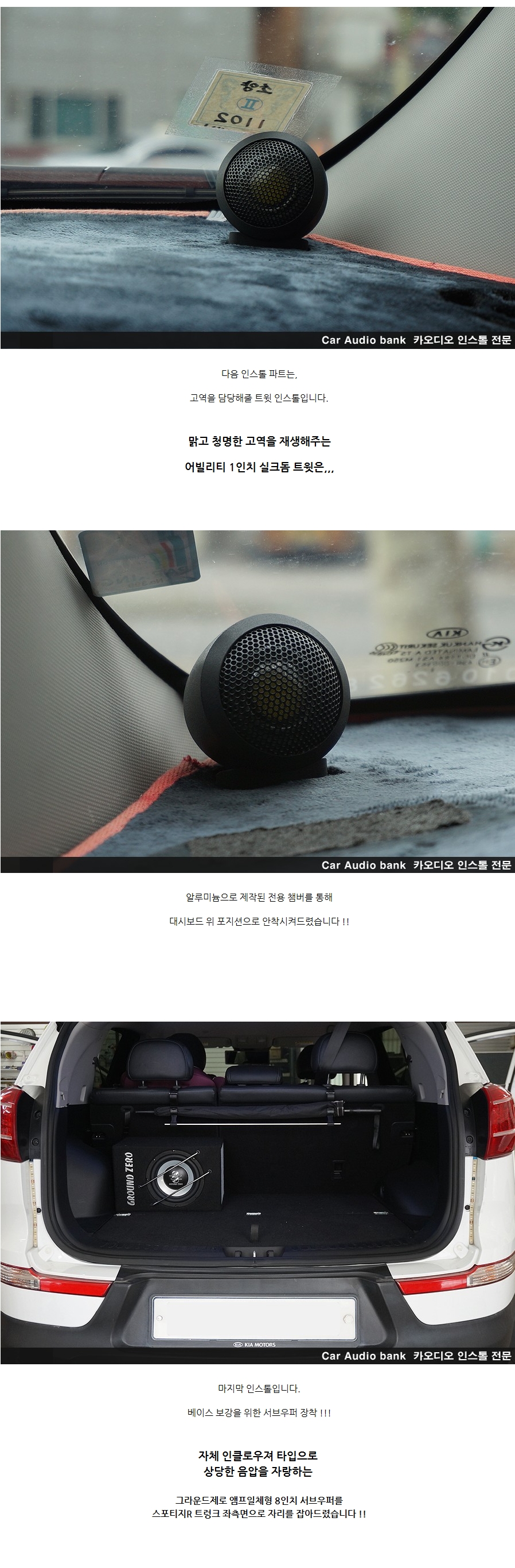 À̹ø¿¡ Á¦ Â÷·® ½ºÆ÷ƼÁö ¿Àµð¿À Æ©´×À» À§ÇØ ¿©·¯ °÷À» ¾Ë¾Æº¸´Ù°¡ ÃÖÁ¾ÀûÀ¸·Î Ä«¿Àµð¿À¹ðÅ© ±¤Áø±¸ ¸ÅÀå¿¡¼­ ÀÛ¾÷À» ÁøÇàÇÏ°Ô µÇ¾ú½À´Ï´Ù. Æò¼Ò À½¾Ç µè´Â °É ÁÁ¾ÆÇÏ´Ù º¸´Ï ¼øÁ¤ ¿Àµð¿À¿¡ ´ëÇÑ ¾Æ½¬¿òÀÌ Ç×»ó ÀÖ¾ú´Âµ¥, À̹ø ±âȸ¿¡ Á¦´ë·Î ¾÷±×·¹À̵带 ÇØº¸°í ½Í¾î¼­ »ó´ãÀ» ¹Þ¾Æº¸°Ô µÇ¾ú¾î¿ä. »ç½Ç Ä«¿Àµð¿À Æ©´×À̶ó´Â °Ô óÀ½ÀÌ¶ó¼­ ¾î¶² Á¦Ç°ÀÌ ÁÁ°í ¾î¶² Á¶ÇÕÀÌ ¸Â´ÂÁö ÀüÇô ¸ô¶ú´Âµ¥, ¸ÅÀå¿¡ ¹æ¹®ÇßÀ» ¶§ Á÷¿øºÐµéÀÌ Á¤¸» Ä£ÀýÇÏ°Ô »ó´ãÀ» ÇØÁּż­ ±²ÀåÈ÷ ÀλóÀûÀ̾ú½À´Ï´Ù. ´Ü¼øÈ÷ ºñ½Ñ Á¦Ç°À» ±ÇÇÏ´Â °ÍÀÌ ¾Æ´Ï¶ó, Á¦°¡ Æò¼Ò ¾î¶² À½¾ÇÀ» µè´ÂÁö, ¾î¶² À½»öÀ» ÁÁ¾ÆÇÏ´ÂÁö, ±×¸®°í Â÷·® ȯ°æ±îÁö °í·ÁÇØ¼­ °¡¼ººñ¿Í ¹ë·±½º¸¦ ¸ÂÃá ½Ã½ºÅÛÀ» ÃßÃµÇØ ¹«¾ùº¸´Ù ÁÁ¾Ò´ø Á¡Àº ¼³¸íÀ» Á¤¸» ÀÌÇØÇϱ⠽±°Ô ÇØÁ̴ּٴ °ÍÀÔ´Ï´Ù. ¿Àµð¿À Æ©´×À» Àß ¸ð¸£´Â »ç¶÷µµ ÀÌÇØÇÒ ¼ö ÀÖ°Ô ½ÇÁ¦ À½¾ÇÀ» µé·ÁÁָ鼭 Â÷À̸¦ ¼³¸íÇØ Áּż­ ½Å·Ú°¡ ¸¹ÀÌ °¬½À´Ï´Ù. ÀÛ¾÷ °úÁ¤µµ ±²ÀåÈ÷ ²Ä²ÄÇß½À´Ï´Ù. Â÷·® ³»ÀåÀ縦 Å»°ÅÇÏ´Â °úÁ¤¿¡¼­µµ ½ºÅ©·¡Ä¡³ª ¼Õ»óÀÌ »ý±âÁö ¾Êµµ·Ï ¸Å¿ì ½Å°æ ¾²½Ã´Â ¸ð½ÀÀÌ º¸¿´°í, ¹è¼± Á¤¸®³ª ÀåÂø ¸¶°¨µµ »ó´çÈ÷ ±ò²ûÇÏ°Ô ÁøÇàÇØ Áּ̽À´Ï´Ù. ÀÌ·± ºÎºÐ¿¡¼­ È®½ÇÈ÷ Àü¹® ¸ÅÀåÀ̶ó´Â ´À³¦À» ¹Þ¾Ò½À´Ï´Ù. Æ©´×ÀÌ ³¡³­ ÈÄ¿¡ óÀ½ À½¾ÇÀ» Ʋ¾îºÃÀ» ¶§ ¼ÖÁ÷È÷ ¸»Çؼ­ Á¤¸» ³î¶ú½À´Ï´Ù. ¼øÁ¤ ¿Àµð¿À¿Í´Â ¿ÏÀüÈ÷ ´Ù¸¥ Â÷¿øÀÇ »ç¿îµå¿´½À´Ï´Ù. °¡Àå ¸ÕÀú ´À²¸Áø °Ç º¸ÄÃÀÌ ÈξÀ ¶Ç·ÇÇÏ°Ô µé¸°´Ù´Â °ÍÀ̾ú°í, ¾Ç±â ¼Ò¸® ÇϳªÇϳª°¡ ºÐ¸®µÇ¾î µé¸®´Â ´À³¦À̾ú½À´Ï´Ù. ÀÌÀü¿¡´Â ÀüüÀûÀ¸·Î ¹¶°³Á®¼­ µé¸®´ø À½¾ÇÀÌ ÀÌÁ¦´Â °ø°£°¨ ÀÖ°Ô ÆîÃÄÁö´Â ´À³¦À̾ú¾î¿ä. ±×¸®°í ¼­ºê¿ìÆÛ ´öºÐ¿¡ ÀúÀ½ÀÌ Á¤¸» ´Ü´ÜÇÏ°Ô ¹ÞÃÄÁÝ´Ï´Ù. ´Ü¼øÈ÷ ÄôÄô ¿ï¸®´Â ÀúÀ½ÀÌ ¾Æ´Ï¶ó ±íÀÌ ÀÖ°í źźÇÑ ÀúÀ½À̶ó À½¾Ç µè´Â Àç¹Ì°¡ È®½ÇÈ÷ ´Þ¶óÁ³½À´Ï´Ù. ƯÈ÷ ÈüÇÕÀ̳ª EDM °°Àº À帣¿¡¼­´Â ü°¨ÀÌ ÈξÀ Å©°Ô ´À²¸Á³½À´Ï´Ù. ¶Ç Çϳª ÁÁ¾Ò´ø Á¡Àº ÀÛ¾÷ÀÌ ³¡³­ ÈÄ¿¡µµ ¼¼ÆÃÀ» ²Ä²ÄÇÏ°Ô Àâ¾ÆÁ̴ּٴ °ÍÀÔ´Ï´Ù. ´Ü¼øÈ÷ ÀåÂø¸¸ ÇÏ´Â °ÍÀÌ ¾Æ´Ï¶ó Â÷·® ³»ºÎ ȯ°æ°ú ûÃë À§Ä¡¸¦ °í·ÁÇØ¼­ À½Ç⠹뷱½º¸¦ ¼¼¹ÐÇÏ°Ô Á¶Á¤ÇØ Áּż­ ¿Ï¼ºµµ°¡ »ó´çÈ÷ ³ô´Ù´Â ´À³¦À» ¹Þ¾Ò½À´Ï´Ù. Æ©´×À» ÇÏ°í ³ª´Ï ÀÌÁ¦ Â÷¿¡¼­ À½¾Ç µè´Â ½Ã°£ÀÌ Á¤¸» Áñ°Å¿öÁ³½À´Ï´Ù. ÃâÅð±Ù ±æÀ̳ª µå¶óÀ̺êÇÒ ¶§¸¶´Ù À½¾ÇÀ» °è¼Ó Ʋ°Ô µÇ³×¿ä. ¿¹Àü¿¡´Â ±×³É ¹è°æÀ½Ã³·³ µè´ø À½¾ÇÀÌ ÀÌÁ¦´Â ÀÛÀº Äܼ­Æ®Àå¿¡ ÀÖ´Â °Í °°Àº ´À³¦À¸·Î µé¸³´Ï´Ù. ÀüüÀûÀ¸·Î ´À³¤ Á¡Àº Ä«¿Àµð¿À¹ðÅ©´Â ´Ü¼øÇÑ ÀåÂø ¸ÅÀåÀÌ ¾Æ´Ï¶ó Á¤¸» ¿Àµð¿À¸¦ Á¦´ë·Î ÀÌÇØÇϰí ÀÛ¾÷ÇÏ´Â Àü¹® ¸ÅÀåÀ̶ó´Â °ÍÀÔ´Ï´Ù. »ó´ãºÎÅÍ ÀÛ¾÷, ¼¼ÆÃ±îÁö ¸ðµç °úÁ¤ÀÌ ¸¸Á·½º·¯¿ü½À´Ï´Ù. Ȥ½Ã Â÷·® ¿Àµð¿À Æ©´×À» °í¹ÎÇÏ°í °è½Å ºÐµéÀÌ ÀÖ´Ù¸é Ä«¿Àµð¿À¹ðÅ© Çѹø ¹æ¹®Çؼ­ »ó´ã ¹Þ¾Æº¸½Ã´Â °É Ãßõµå¸³´Ï´Ù. Ä£ÀýÇÑ »ó´ã°ú Àü¹®ÀûÀÎ ÀÛ¾÷ ´öºÐ¿¡ Á¤¸» ¸¸Á·½º·¯¿î ¾÷±×·¹À̵带 ÇÒ ¼ö ÀÖ¾ú½À´Ï´Ù. Àúó·³ ¼øÁ¤ ¿Àµð¿À¿¡ ¾Æ½¬¿òÀÌ ÀÖ¾ú´ø ºÐµéÀ̶ó¸é È®½ÇÈ÷ ü°¨ÇÒ ¼ö ÀÖ´Â º¯È­¸¦ ´À³¢½Ç °Å¶ó°í »ý°¢ÇÕ´Ï´Ù. ÁÁÀº ÀÛ¾÷ ÇØÁֽŠī¿Àµð¿À¹ðÅ© Á÷¿øºÐµé²² °¨»çµå¸³´Ï´Ù! 🙏